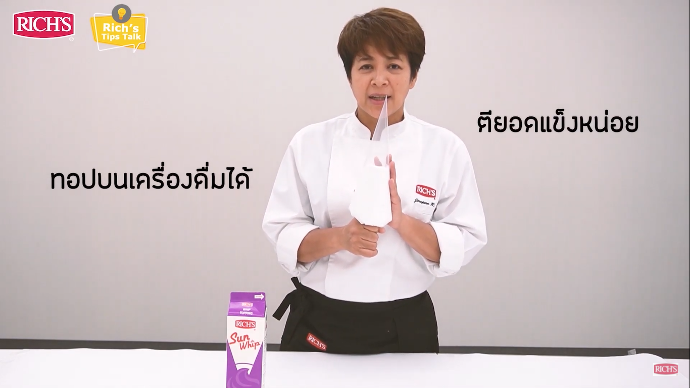 - เคล็ดลับการตี ริชส์ ซันวิป ให้อยู่ตัวนานๆ เทคนิคตี ริชส์ ซันวิป ในห้องที่ไม่มีแอร์ และการตั้งยอดของวิปปิ้งครีมแต่ละแบบต่างกันยังไง?