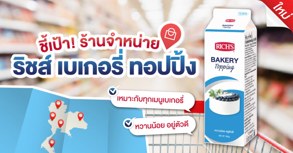จุดจำหน่าย ริชส์ เบเกอรี่ ทอปปิ้งทั่วประเทศ หาซื้อได้แล้วที่ร้านขายอุปกรณ์เบเกอรี่ใกล้บ้านคุณ ตรวจสอบสาขาใกล้คุณได้ที่นี่เลย