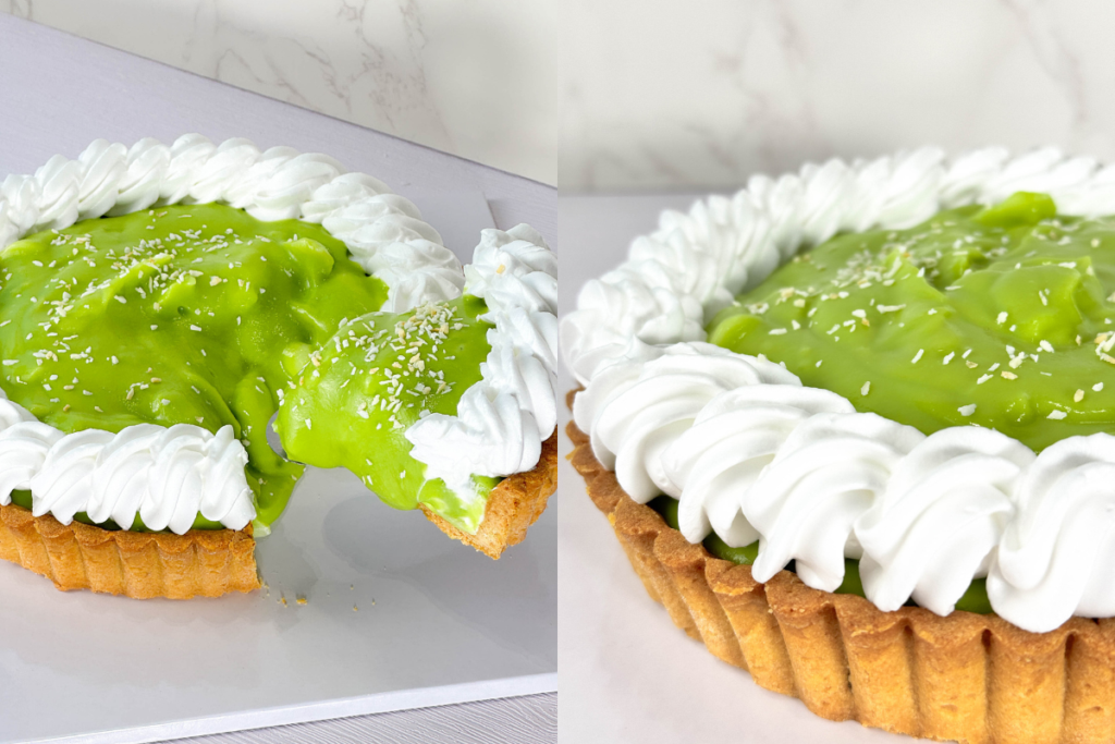 ทาร์ตครีมมะะพร้าว สังขยาใบเตยมะพร้าวอ่อน ตัดแบ่งชิ้นขายได้กำไร ต้นทุนต่อชิ้นเพียง 77.6 บาท ดูสูตรคลิก