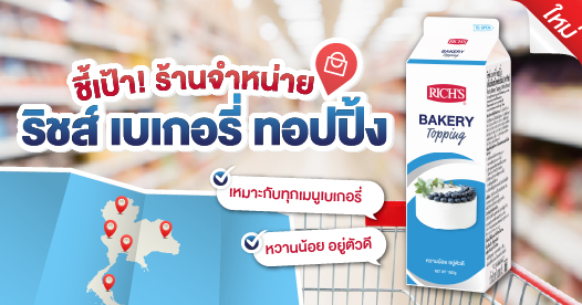 ริชส์ เบเกอรี่ ทอปปิ้ง มีจำหน่ายที่ร้านขายอุปกรณ์เบเกอรี่ทั่วประเทศ สอบถามรายละเอียดเพิ่มเติมได้ที่เพจ Rich Products Thailand