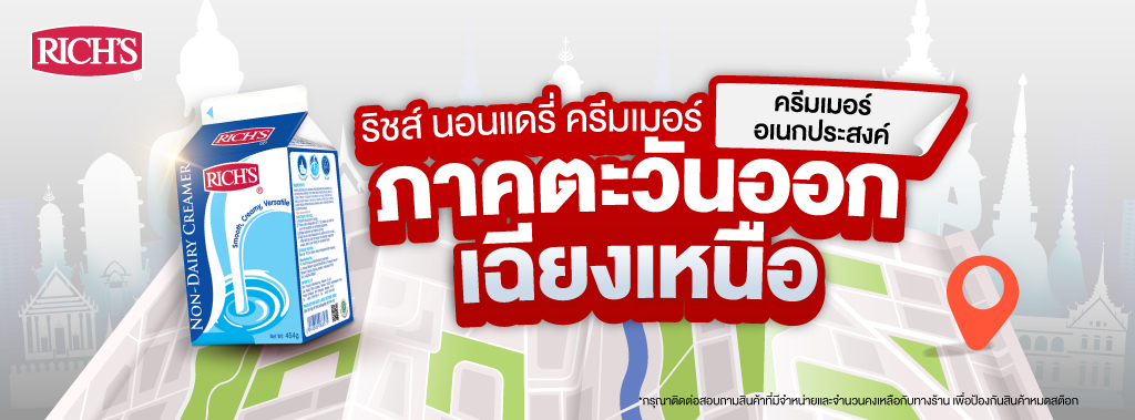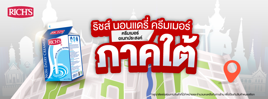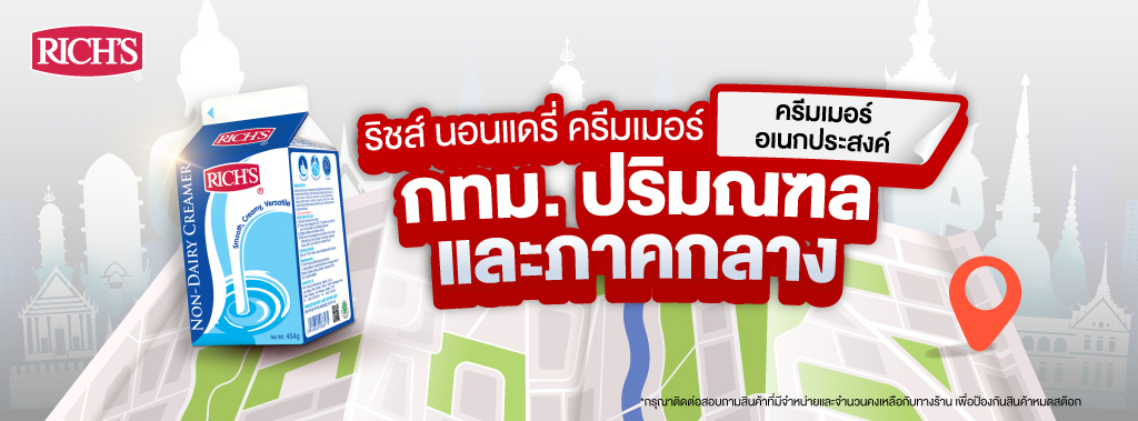 จุดจำหน่าย ริชส์ นอนแดรี่ ครีมเมอร์ วัตถุดิบอเนกประสงค์คู่ใจผู้ประกอบการร้านขนม เบเกอรี่ และคาเฟ่ ซื้อได้แล้วที่จุดจำหน่ายทั่วประเทศ ใกล้ที่ไหน ไปซื้อได้เลย!